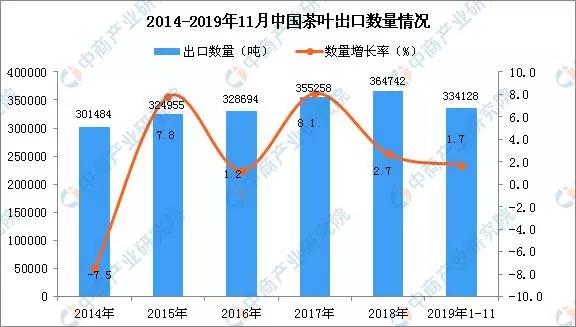 2019年1-11月中國(guó)茶葉出口量同比增長(zhǎng)1.7%